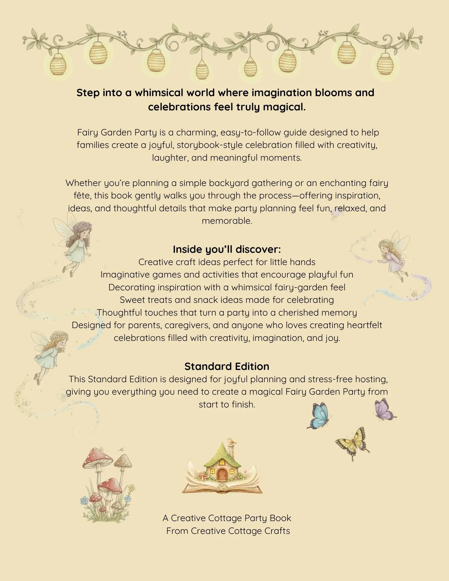 The Fairy Garden Party Digital Edition is a beautifully designed, printable PDF filled with creative ideas, crafts, activities, and planning guidance to help you host a magical fairy-themed celebration.